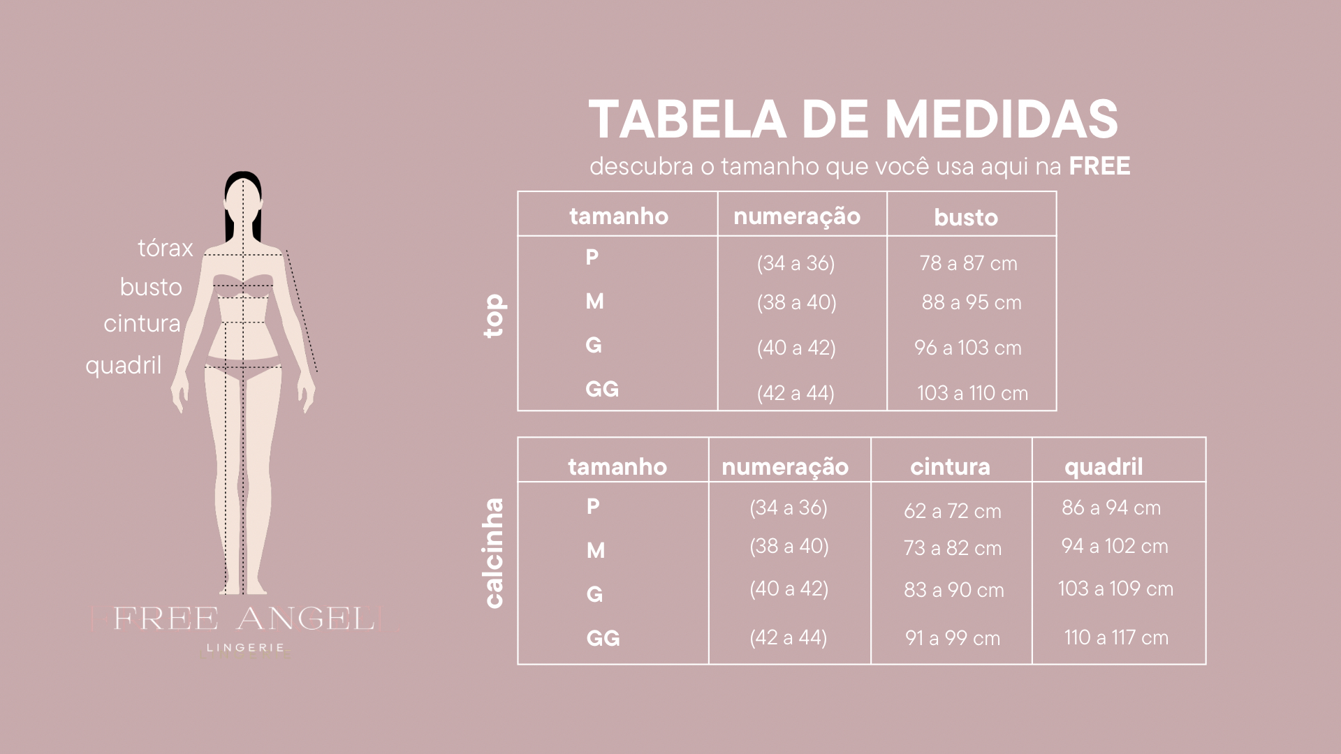 Angel, tenha cautela ao se basear nas fotos e medidas de nossas modelos. A Cindy, por exemplo, poderia usar M, mas opta pelo P por preferir um visual mais cavado. Já a Ana Teresa tem mais volume de busto e quadril, o que realça ainda mais a modelagem do top e da calcinha. Pense se você prefere um visual mais justinho ou mais confortável, isso te ajudará a encontrar o tamanho ideal.